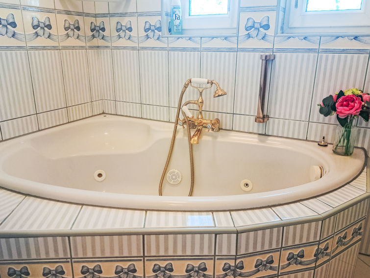 "Rose", 5-Zimmer-Villa 130 m2. Geschmackvoll und romantisch eingerichtet: Eingang. Wohnzimmer. 1 Doppelzimmer. Bad/WC, Sauna. Obergeschoss: Wohn-/Esszimmer mit 1 Doppeldiwanbett, Essecke und Kabel-TV. Ausgang zum Balkon. 1 Doppelzimmer. Kleine Küche (Backofen, Geschirrspüler, 4 Glaskeramikplatten, Toaster, Wasserkocher, elektrische Kaffeemaschine). Bad/WC mit Eckbadewanne. 2. Obergeschoss: 1 Doppelzimmer. Kleine Terrasse, kleiner Garten. Terrassenmöbel. Sehr schöne Sicht auf den See. Zur Verfügung: Waschmaschine, Wäschetrockner, Sauna. Tolle Ausstattung:sep. Wirtschaftsraum (Waschmaschine, Trockner, Bügeleisen), sowie netter Ruheraum mit Home Office Ecke.