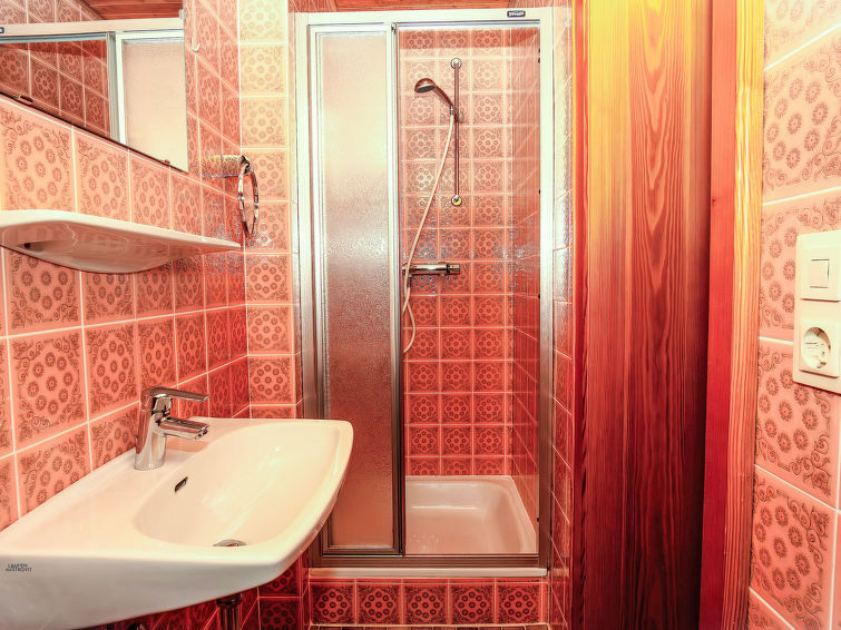 "Dachstein", 3-Zimmer-Wohnung 60 m2 im 2. Stock. Rustikal und gemütlich eingerichtet: Eingang. Wohn-/Schlafzimmer 16 m2 mit 1 Doppeldiwanbett, Dusche/WC und Kabel-TV. Ausgang zum Balkon. 1 Doppelzimmer 12 m2 mit 1 Doppelbett (180 cm, Länge 200 cm), Dusche/WC. 1 Doppelzimmer 16 m2 mit 2 Betten (90 cm, Länge 200 cm), Dusche/WC und E-Heizung. Kleine Küche 8 m2 (2 Kochplatten, Backofen, Geschirrspüler, elektrische Kaffeemaschine). Grosser Balkon. Balkonmöbel. Sehr schöne Sicht auf die Berge und die Landschaft. Parkplatz. Bitte beachten: Nichtraucher-Unterkunft, Nichtraucher-Haus. 1 Haustier/Hund erlaubt. 50407-000144-2020