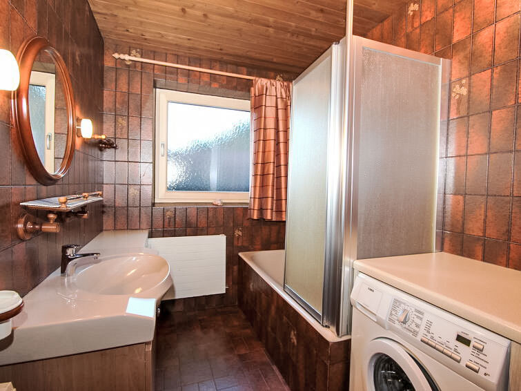 8-Zimmer-Haus 210 m2 auf 3 Stockwerken. Komfortabel und geschmackvoll eingerichtet: Eingang. Ausgang zum Garten. 2 Zimmer, jedes Zimmer mit 1 Doppelbett und 1 Ausziehbett (1 Pers.). Grosse Wohnküche (Backofen, Geschirrspüler, 4 Glaskeramikplatten) mit Esstisch, Radio und CD. Dusche/WC, sep. WC. Obergeschoss: Eingang. Wohnzimmer mit 2 Diwanbetten und Sat-TV (Flachbildschirm). Ausgang zum Garten, zum Balkon, zur Terrasse. 1 Doppelzimmer. Ausgang zum Garten, zur Terrasse. Wohnküche (Backofen, Geschirrspüler, 4 Glaskeramikplatten, Mikrowelle) mit Esstisch, 1 Diwanbett, Radio und CD. Bad, sep. WC. 2. Obergeschoss: 3 Zimmer, jedes Zimmer mit 1 Doppelbett und 1 Ausziehbett (1 Pers.), Waschbecken. Ausgang zum Balkon. 1 kleines Zimmer mit 1 x 2 Etagenbetten (90 cm, Länge 190 cm). 2 Duschen, 2 sep. WC's. Das Wohnzimmer ist eine Bauernstube. 2 grosse Balkone, Terrasse. Terrassenmöbel, Liegestühle (5). Herrliche Panoramasicht auf die Berge, das Tal und die Landschaft. Zur Verfügung: Kinderhochstuhl. Internet (WLAN, gratis). Bitte beachten: Nichtraucher-Unterkunft. Schöner Grillplatz vorhanden.