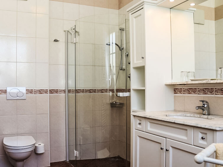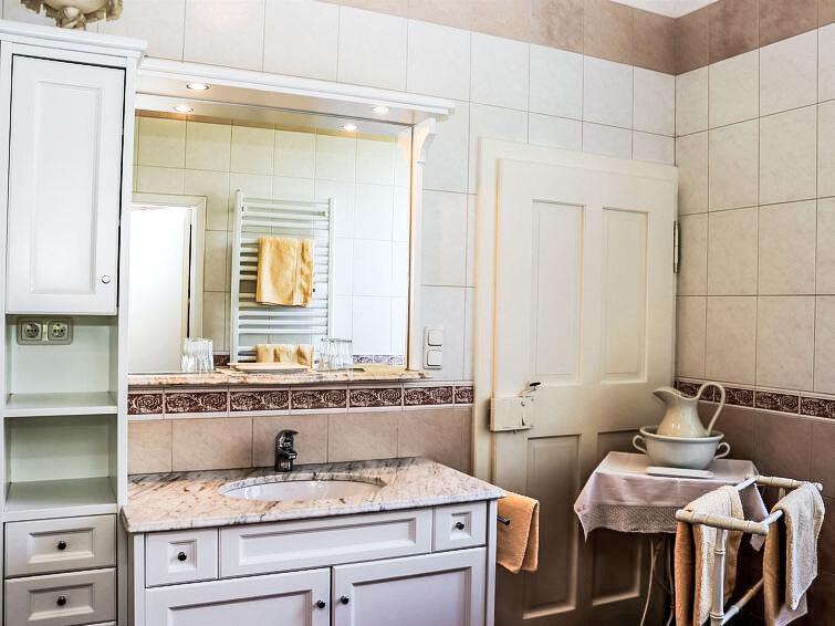 Villa 3-kamers 90 m2 op 2 verdiepingen. Zeer smaakvol en stijlvol ingericht: hal. Woonkamer met tegelkachel. 1 2-pers. kamer met douche/WC. Keuken (4-pits kookplaat, oven, afwasmachine, magnetron) met eethoek. Aparte WC. Bovenverdieping: 1 2-pers. kamer met Kabel-TV. Douche/WC. Vloerverwarming. Terras overdekt. Terrasmeubelen, bergruimte. Mooi uitzicht op de tuin. Ter beschikking: wasmachine. Internet (Internet (WiFi), gratis). Parkeerplaats (overdekt, 2 Auto's) bij het huis. Rookvrij huis. Het meubilair van de Rosenvilla is origineel Biedermeier. Er staat een grote piano in de salon. De afgebeelde tegelkachel dient alleen als een ornament. Vanwege de waardevolle uitrusting zijn kinderen alleen welkom vanaf 10 jaar. Bij reserveringen van meer dan 8 nachten is een tussentijdse schoonmaak verplicht en kost 60 EUR per schoonmaak ter plaatse. Als er minder dan het maximale aantal gasten in de accommodatie verblijft, zijn niet alle wooneenheden beschikbaar voor gebruik.