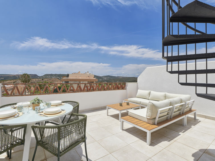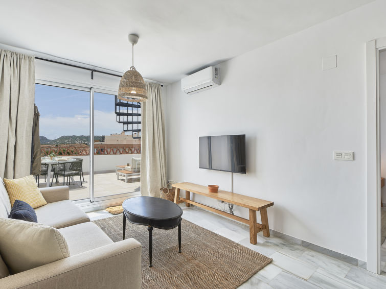 "Doña Julia Golf Views", dakappartement 3-kamers 122 m2 op 2 verdiepingen. Zeer mooi en modern ingericht: woon-/eetkamer met bad, Digitale TV, air-conditioning en heteluchtverwarming. Uitgang naar het terras. 1 kamer met 2 bedden (90 cm, lengte 200 cm), bad/douche/WC, air-conditioning en heteluchtverwarming. 1 kamer met 1 2-pers bed (160 cm, lengte 200 cm), wastafel, douche/WC, air-conditioning en heteluchtverwarming. Uitgang naar het terras. Open keuken (oven, afwasmachine, 3 keramische glas kookplaten, broodrooster, waterkoker, magnetron, elektrische koffiemachine). Groot terras 25 m2, groot terras 45 m2. Terrasmeubelen. Ter beschikking: wasmachine, strijkijzer, kinderstoel, kinderbed, haardroger. Internet (WiFi, gratis). Garage nr. 19 (1 Auto). VUT/MA/66126 // Reg. Nr.: ESFCTU0000290400003885050000000000000000VUT/MA/661268