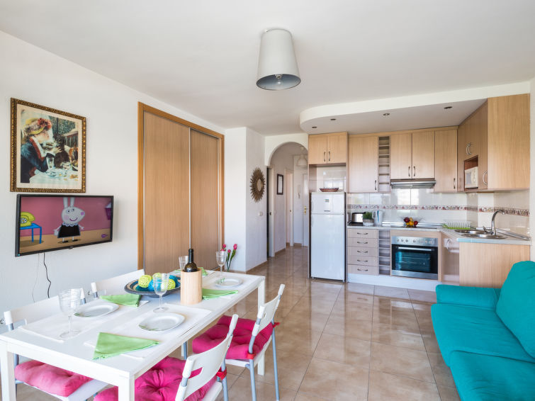 Appartement 3-kamers 65 m2 op de 2e verdieping. Het objekt is geschikt voor 2 volwassenen + 2 kinderen. Eenvoudig en comfortabel ingericht: woon-/eetkamer met Digitale TV, Flatscreen TV, air-conditioning en heteluchtverwarming. Uitgang naar het terras. 1 2-pers. kamer met 2 bedden (90 cm). 1 2-pers. kamer met 1 bed (150 cm). Open keuken (oven, magnetron, elektrische koffiemachine). Douche/WC. Terras. Terrasmeubelen. Uitzicht op het zwembad, de tuin en de oceaan. Ter beschikking: wasmachine. Geschikt voor families. VUT/MA/35731 // Reg. Nr.: ESFCTU0000290350000647260000000000000000VUT/MA/357314