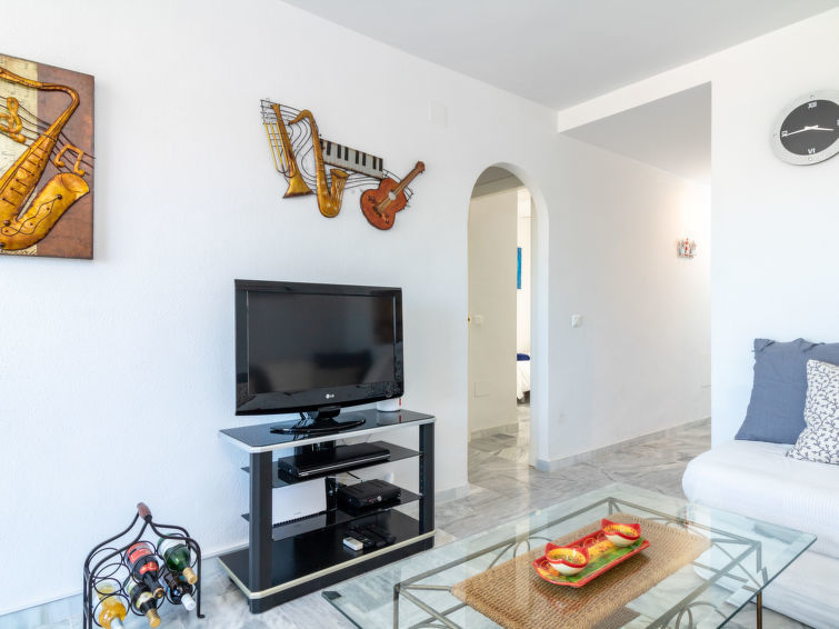 Mooi, gezellig flatgebouw "Angel Blanco". Aan de rand van de plaats, 1.5 km van het centrum van La cala de Mijas, 500 m van zee, aan een doodlopende weg, op het oosten. Voor medegebruik: tuin op verschillende niveaus, 2 zwembaden (seizoensgebonden beschikbaarheid: 16.Mei. - 30.Sep. openingstijden zwembad: 11:00-21:00). Kinderzwembad. In het huis: centrale verwarming, air-conditioning, wasmachine. Parkeerplaats. Levensmiddelenwinkel, restaurant, bar 400 m, bushalte "Torrenueva V" 900 m, zandstrand "El Bombo" 500 m. Het objekt is geschikt voor 4 volwassenen. Vliegveld 35 km van het huis. Groot rechthoekig zwembad in het centrum van het complex (seizoensgebonden beschikbaarheid: rond 16 mei tot ongeveer midden of eind september, afhankelijk van de weersomstandigheden. Openingstijden zwembad 16-31 mei: 11:00-19:00, 1 juni- 31 augustus: 11:00 - 21:00 uur, 1 - 15 september: 11:00 - 20:00 uur). Kinderbad naast het grote zwembad. Rond zoutwaterzwembad aan de andere kant van het complex.