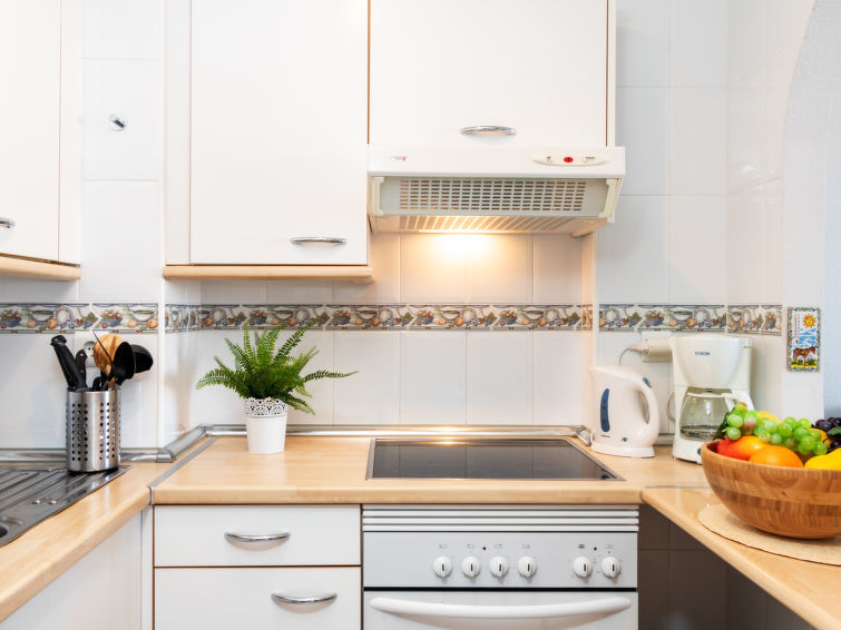 "Angel Blanco", appartement 3-kamers 52 m2, op het oosten gelegen. Het objekt is geschikt voor 4 volwassenen. Ruim en licht, comfortabel en mooi ingericht: woon-/eetkamer met Digitale TV. Uitgang naar het terras. 1 kamer met 1 2-pers bed (180 cm, lengte 200 cm), bad/WC. 1 kamer met 2 bedden (90 cm, lengte 200 cm). Keuken (oven, 4 keramische glas kookplaten, magnetron, diepvriezer, elektrische koffiemachine). Douche/WC. Terras 15 m2, groot terras 52 m2. Terrasmeubelen, barbecue, ligstoelen. Zeer mooi uitzicht op zee. Ter beschikking: wasmachine. Internet (WiFi, gratis). Parkeerplaats nr. 86. Niet rokers woning. VUT/MA/25659 // Reg. Nr.: ESFCTU0000290440008174470000000000000000VUT/MA/256590