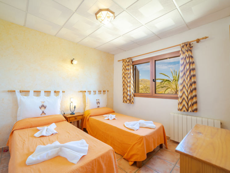"Cala Torta Na Lluny", huis 7-kamers 400 m2 op 3 verdiepingen. Het objekt is geschikt voor 10 volwassenen. Licht, rustiek ingericht: woon-/eetkamer met open haard, eettafel, Sat-TV en stereo-installatie. Uitgang naar het terras. 1 kamer met 2 bedden en Sat-TV. 1 kamer met 1 2-pers bed, bad/WC en Sat-TV. Keuken (4-pits kookplaat, elektrische koffiemachine). Bad/WC. Verwarming. Bovenverdieping: woon-/eetkamer met open haard en eettafel. Uitgang naar het terras. 1 kamer met 2 bedden (90 cm). 1 kamer met 1 2-pers bed, bad/WC en Sat-TV. Keuken (4-pits kookplaat, magnetron, elektrische koffiemachine). Uitgang naar het terras. 2e Verdieping: 1 kamer 25 m2 met 2 bedden (90 cm), wastafel. Terrasmeubelen, barbecue. Panoramazicht op zee en de bergen. Ter beschikking: wasmachine, kluis, strijkijzer, kinderstoel, kinderbed tot 2 jaar. Internet (WiFi). Maximaal 2 huisdieren/honden toegestaan. Het huis heeft 2 verdiepingen met eigen ingang en faciliteiten: benedenverdieping (4 pers), middelste verdieping (4 pers) en de bovenverdieping (2 pers). ETV890