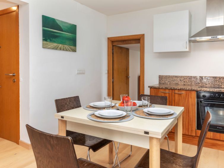 "St. Vicenç", appartement 3-kamers 62 m2 op de 2e verdieping. Doelmatig en gezellig ingericht: woon-/eetkamer met 1 divanbed (125 cm, lengte 190 cm), TV en Digitale TV (Flatscreen TV). 1 kamer, op 2 verdiepingen met 1 2-pers bed (135 cm, lengte 190 cm). 1 kamer met 1 bed (80 cm, lengte 180 cm). Open keuken (oven, 4 keramische glas kookplaten, magnetron). Douche/WC. Boiler (80 liter). Geen uitzicht. Ter beschikking: wasmachine. TV alleen ES. HUTG-035657 // Reg. Nr.: ESFCTU00001702000037642400000000000000HUTG-035657-826