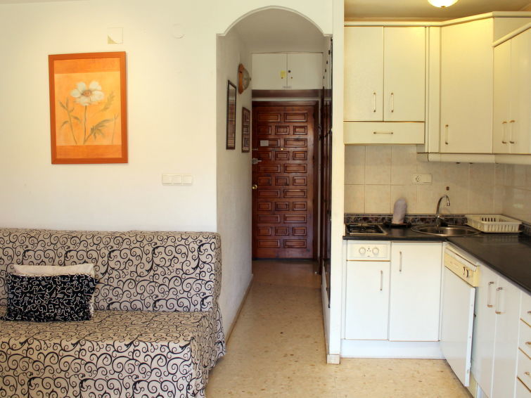 "Don Miguel III", appartement 2-kamers 30 m2 op de 1e verdieping. Zeer eenvoudig ingericht: woon-/eetkamer 16 m2 met 1 uitschuifbaar bed, bad/bidet/WC, Digitale TV, elektrische verwarming, air-conditioning en heteluchtverwarming. Uitgang naar de veranda. 1 kamer 6 m2 met 2 bedden (90 cm, lengte 180 cm), ventilator. Kookhoek (2-pits kookplaat, broodrooster, waterkoker, magnetron, diepvriezer, elektrische koffiemachine). Boiler (50 liter). Beperkt uitzicht op zee en het landschap. Ter beschikking: wasmachine, strijkijzer, haardroger. VT-320876-BM // Reg. Nr.: ESFCTU0000030430000473820000000000000000VT-320876-BM7