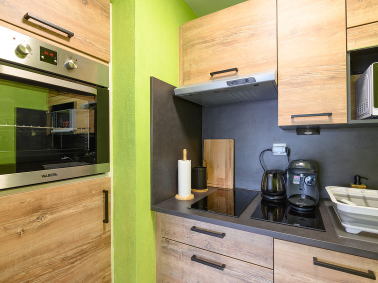 "Bosquets 2 pièces balcon", appartement 2-kamers 35 m2 op de 1e verdieping. Doelmatig en mooi ingericht: woonkamer met 1 divanbed (140 cm, lengte 190 cm), eethoek en TV (Flatscreen TV). Uitgang naar het balkon. 1 kamer met 1 2-pers bed (160 cm, lengte 200 cm). Kleine, open keuken (oven, afwasmachine, 2 inductiekookplaten, broodrooster, waterkoker, magnetron, elektrische koffiemachine, pads voor de koffiemachine (Tassimo) extra). Badkamer, aparte WC. Elektrische verwarming. Balkon 8 m2, op het noordwesten gelegen. Balkonmeubilair. Ter beschikking: wasmachine, strijkijzer, haardroger. Internet (Internet (WiFi), gratis). Parkeerplaats nr. 6. Niet rokers woning. Rookmelders. Bedindeling is flexibel. Er zijn meer slaapmogelijkheden beschikbaar dan het maximaal toegestane aantal personen dat echter niet mag worden overschreden. Aanbod door een particulier volgens art. 155, IV van CGI. 85194004909B5