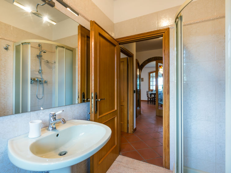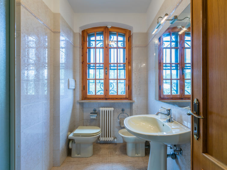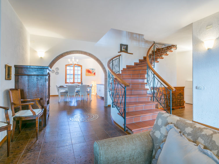Huis 7-kamers op 2 verdiepingen, op verhoogde begane grond. Ruim en licht, mooi en gezellig ingericht: woonkamer met open haard en Sat-TV. Uitgang naar het terras. Woon-/slaapkamer met 1 divanbed en Sat-TV. Uitgang naar het terras. 1 kamer met 2 bedden. 2 2-pers. kamers. 1 kamer met 1 bed en 1 2-pers bed (140 cm). Groot keuken (oven, afwasmachine, 4 inductiekookplaten, broodrooster, waterkoker, magnetron, elektrische koffiemachine) met eettafel. 3 douche/bidet/WC's. Elektrische verwarming, olie-verwarming, air-conditioning. Bovenverdieping: woon-/slaapkamer met 1 2-pers divanbed en air-conditioning. Uitgang naar het balkon. 2 terrassen overdekt. Terrasmeubelen, barbecue. Ter beschikking: wasmachine, strijkijzer, klamboe, kinderstoel, kinderbed tot 2 jaar, haardroger. Internet (WiFi, gratis). Maximaal 2 huisdieren/honden toegestaan. Privé ingang, rookmelders, brandblusser. Geen interne verbinding tussen de aparte wooneenheden. Het zwembad genoemd in de beschrijving is voor privé gebruik. IT050006C2ZBQEO45M,IT050006C2Z9RCWQKK