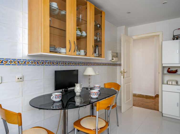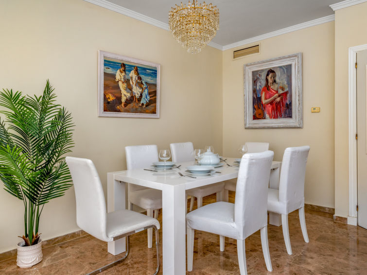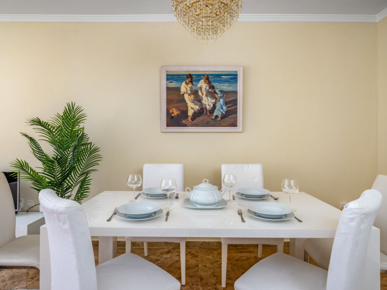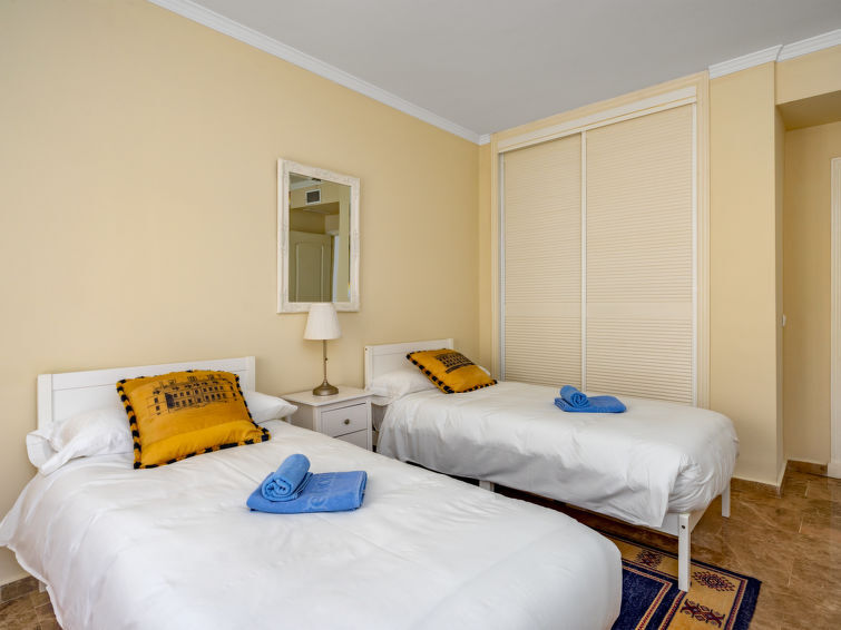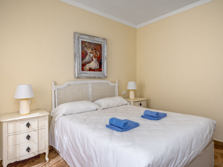 "Los Almendros 2", appartement 3-kamers 104 m2. Comfortabel en mooi ingericht: woon-/eetkamer met eettafel en Sat-TV. Uitgang naar het terras. 1 2-pers. kamer met 1 2-pers bed (150 cm, lengte 200 cm), bad/douche/WC. Uitgang naar het terras. 1 2-pers. kamer met 2 bedden (90 cm, lengte 200 cm). Keuken (4-pits kookplaat, oven, afwasmachine, broodrooster, waterkoker, magnetron, diepvriezer, grill, elektrische koffiemachine). Douche/WC. Air-conditioning, heteluchtverwarming. Terras 18 m2. Terrasmeubelen. Ter beschikking: wasmachine, droger, strijkijzer, kinderstoel, kinderbed, haardroger. Internet (WiFi, gratis). Parkeerplaats nr. 63. Maximaal 1 huisdier/hond toegestaan. VUT/MA/61662 // Reg. Nr.: ESFCTU0000290420003577410000000000000000VUT/MA/616626