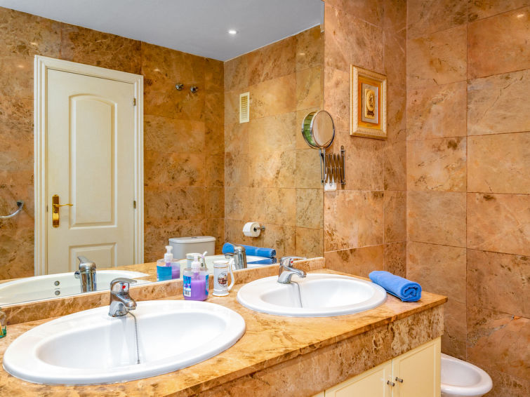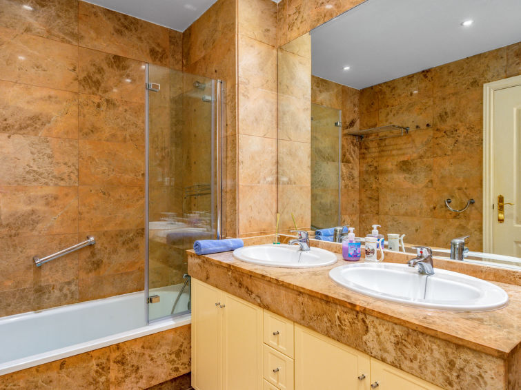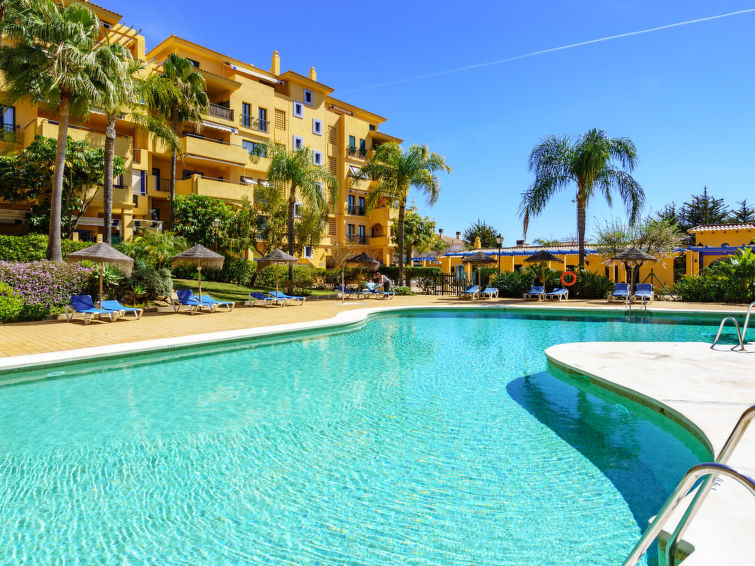 Groot, mooi flatgebouw "Los Almendros". In het centrum van San Pedro de Alcantara, 3 km van het centrum van Puerto Banus, 7 km van het centrum van Marbella, centrale, zonnige ligging, 900 m van zee, 900 m van het strand, op het zuidoosten. Voor medegebruik: mooie tuin ter ontspanning, openluchtzwembad (130 - 200 cm diepte, seizoensgebonden beschikbaarheid: 01.Jan. - 31.Dec. openingstijden zwembad: 10:00-22:30). Onregelmatig zwembad. Kinderzwembad, buitendouche, terras. In het huis: centrale verwarming, air-conditioning, wasmachine, droger. Parkeerplaats. Winkel 100 m, supermarkt 300 m, winkelcentrum 100 m, restaurant 150 m, bar, bakkerij, café, voetgangersgebied 100 m, bushalte "Boulevard San Pedro" 250 m, zandstrand 900 m. Golfterrein (18 holes) 2 km. Geschikt voor families, baby uitrusting (incl.). De eigenaar accepteert geen jeugdgroepen. Het vakantiecomplex wordt 24 uur per dag bewaakt. De omgeving is gevoelig voor geluidsoverlast. Gelieve geen lawaai te maken en de rust te bewaren.