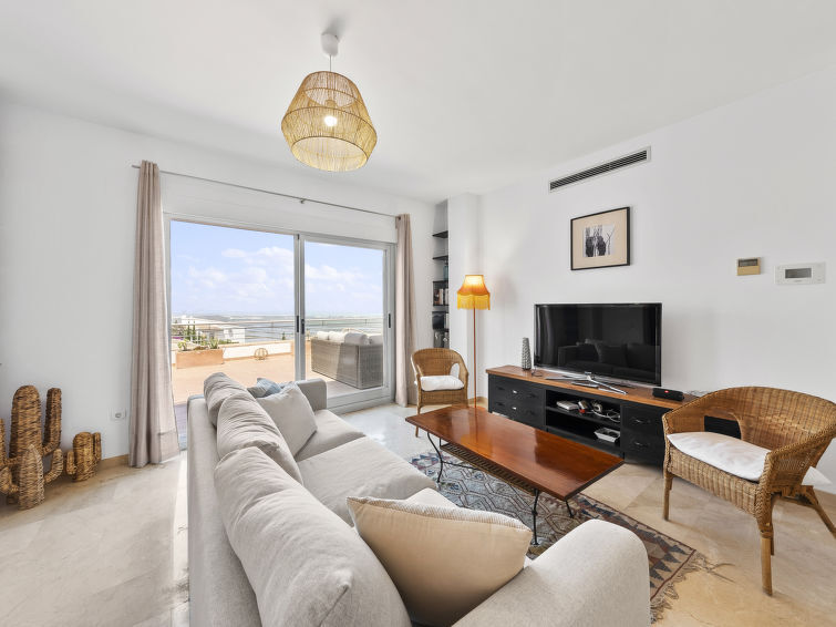 "Cima del Mar", appartement 4-kamers 110 m2. Ruim en licht, comfortabel en stijlvol ingericht: woon-/eetkamer met Digitale TV. Uitgang naar het terras. 1 kamer met 1 2-pers bed (160 cm, lengte 200 cm), douche/WC. Uitgang naar het terras. 1 kamer met 1 2-pers bed (160 cm, lengte 200 cm). Uitgang naar het terras. 1 kamer met 2 bedden (90 cm, lengte 190 cm). Uitgang naar het terras. Keuken (oven, afwasmachine, 4 keramische glas kookplaten, broodrooster, waterkoker, magnetron, diepvriezer, elektrische koffiemachine). Douche/WC. Groot terras 90 m2, prieel. Terrasmeubelen. Mooi uitzicht op zee, de bergen en het dal. Ter beschikking: wasmachine, strijkijzer, haardroger. Internet (WiFi, gratis). Parkeerplaats nr. apto 18 plaza 28. Maximaal 1 huisdier/hond toegestaan. VT-495626-A // Reg. Nr.: ESFCTU00000301500043190400000000000000000VT-495626-A9